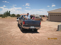 One morning after Ami got off graveyard shift, she met us at our house and we got to go to Snowflake and spend a few days with Grandma and Grandpa. Abbi and Marci came over and all the kids had fun playing outside, helping build the wagon for Jill and Lil, and playing with Smoochie. It is always so nice and cool up there compared with the heat of Gilbert. We planned a picnic at the park one day and we (including adults) played games with the kids. We played frisbee's and freeze tag. Boy am I out of shape. The kids got to go with Grandpa to the brown store. That's always a treat.